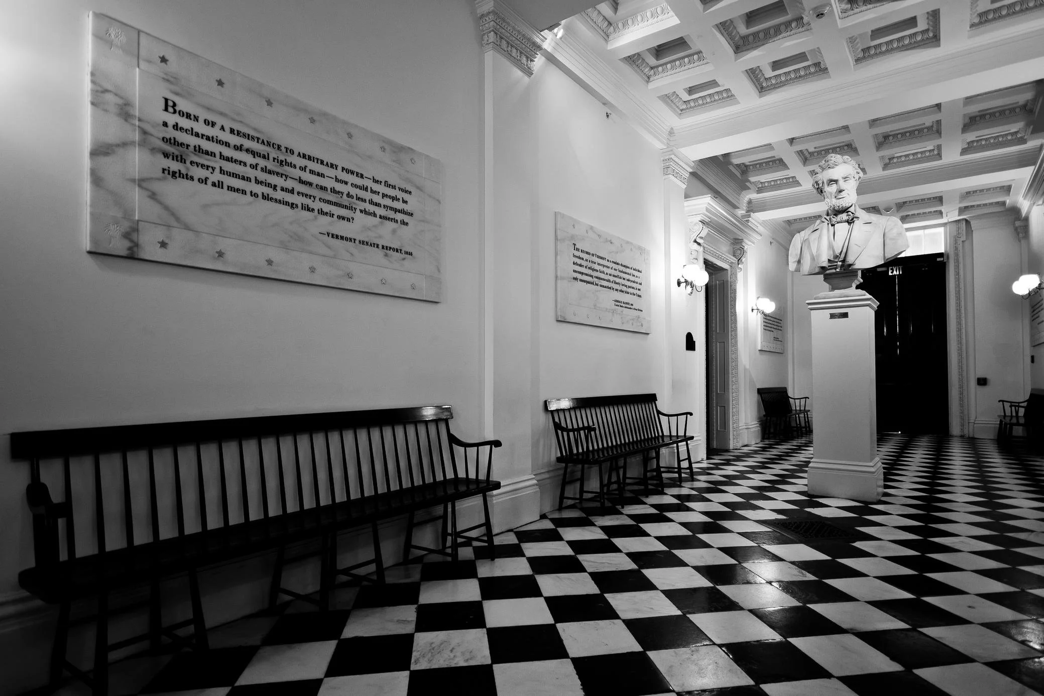 Vermont’s capitol, in Montpelier, was the ninth capitol I photographed. It is one of the smallest capitols in the country, which befits its state and its city - Montpelier is the smallest state capital by population in the US. The building itself is topped by a beautiful gold dome which gleams against a hillside in downtown Montpelier. The interior is quaint and warm. These photos were taken in two trips, first in October of 2012 and then again in July of 2013.